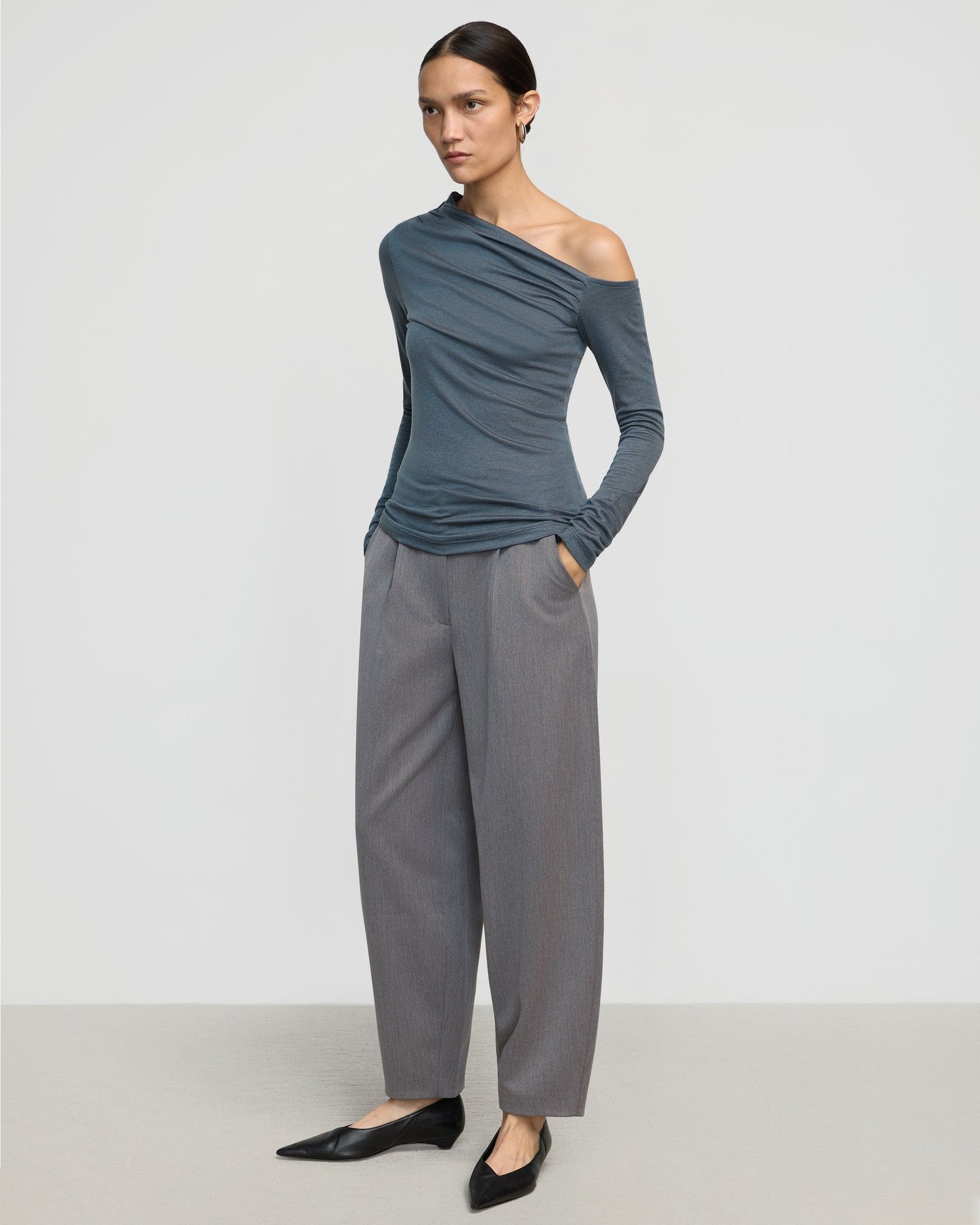 A sleek and modern long-sleeve tee, designed with a ruched neckline and elegant off-shoulder cut, Ayra is a go-to for any upcoming occasion.?