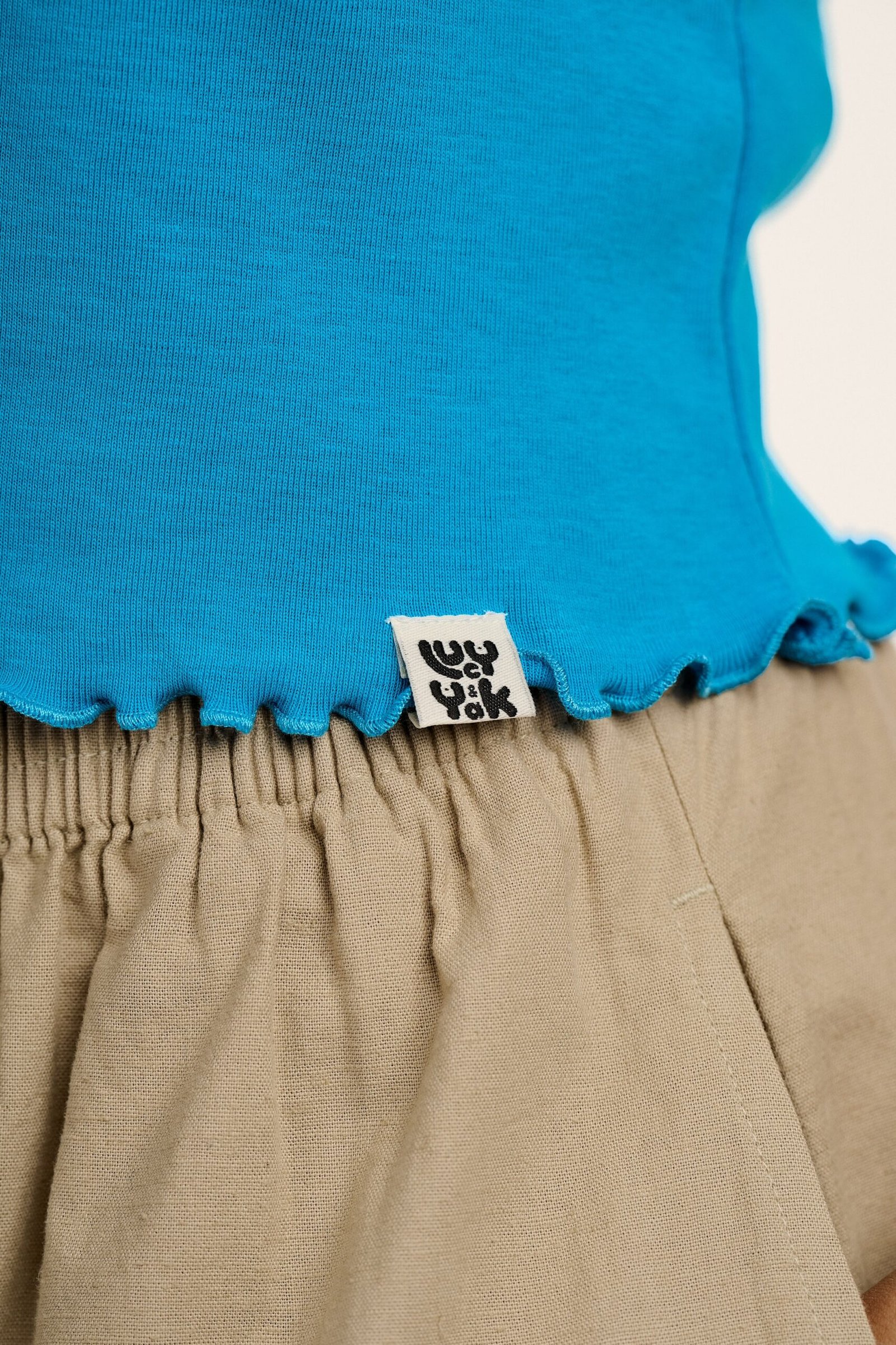 Greta is our cropped t-shirt with a lettuce edge detail. Perfect for layering.