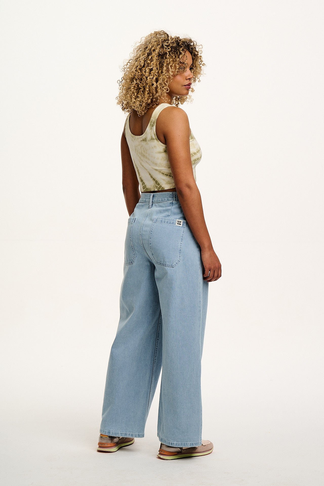 Josy is our scoop neck fitted vest, with a cropped length to wear with our high-waist trousers, available in Green Tie Dye!