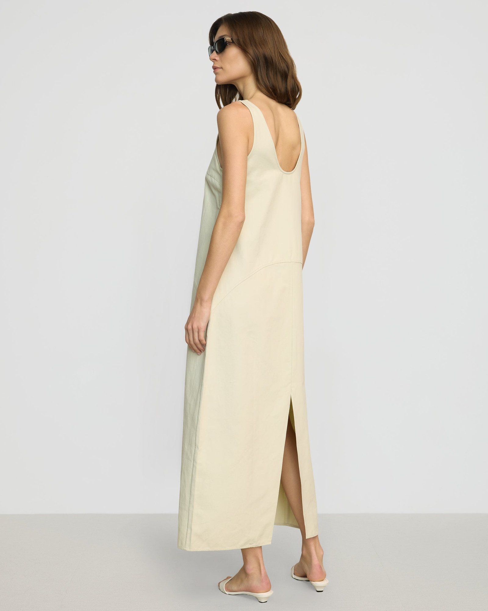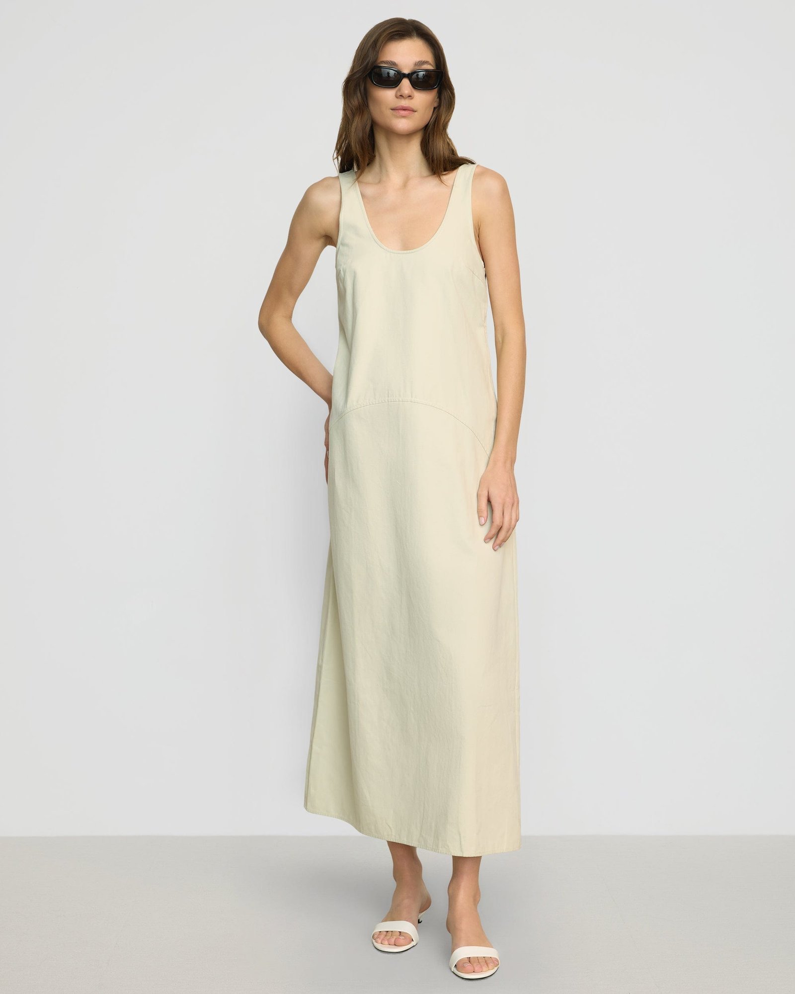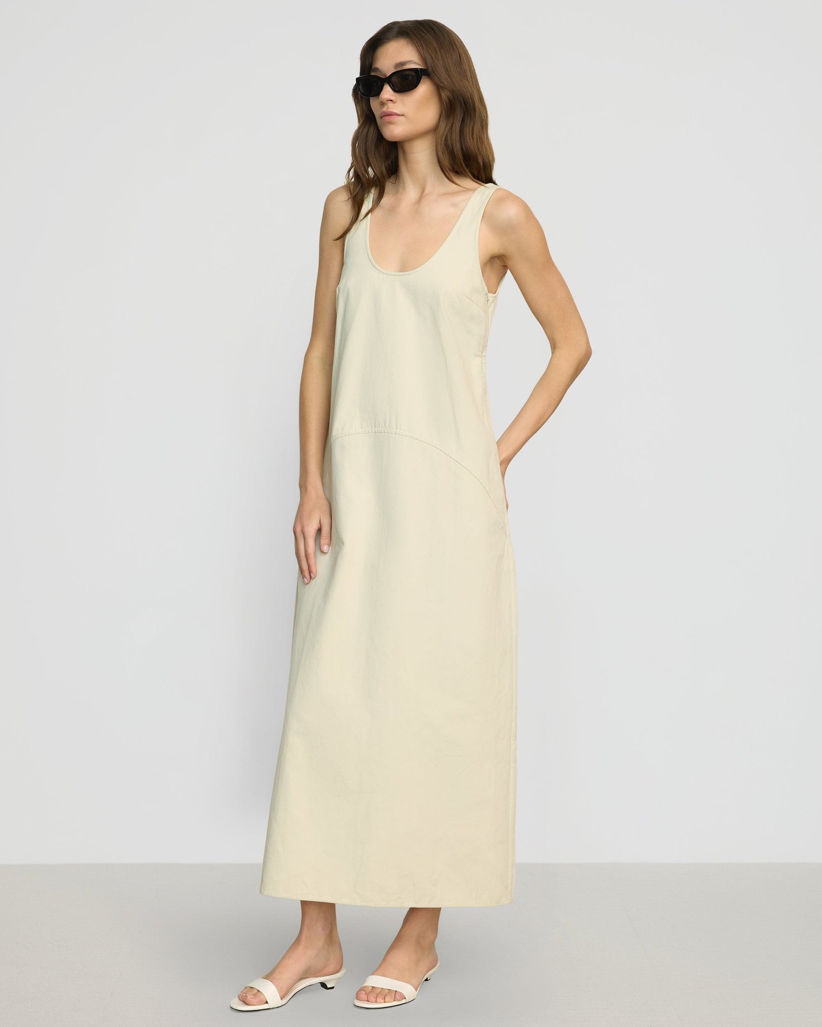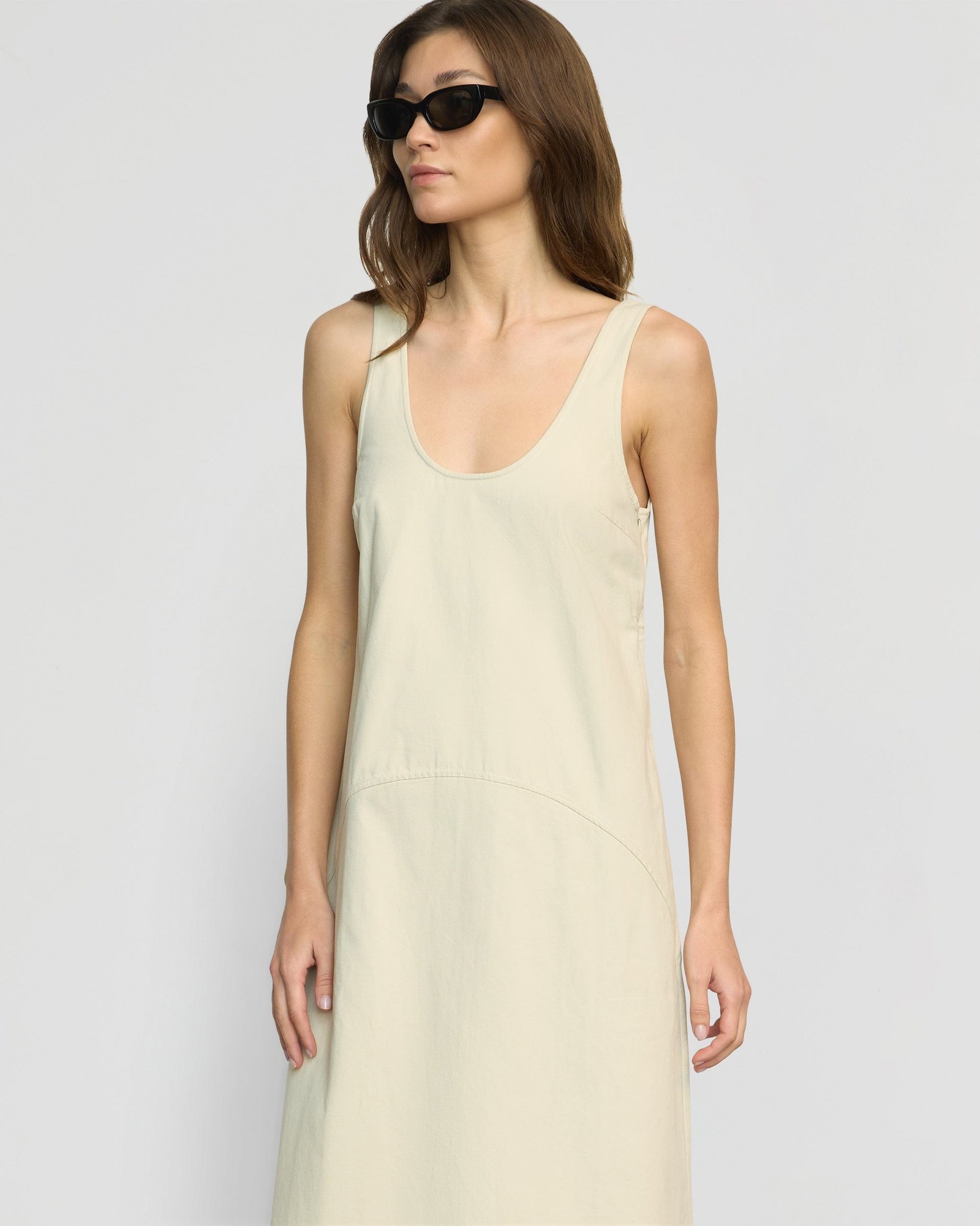 Effortlessly refined, Mavis is a structured cotton U-neck tank dress — blending modern curved seam details with a versatile silhouette, making it the perfect solution for chic transitional dressing.