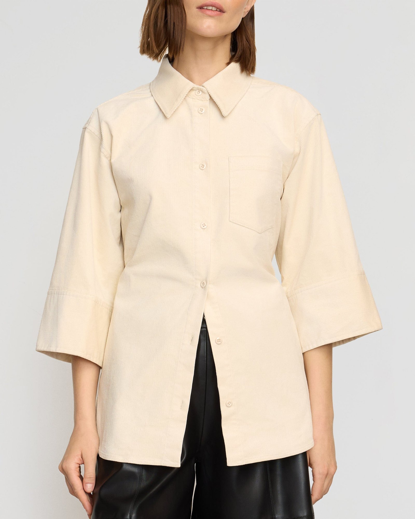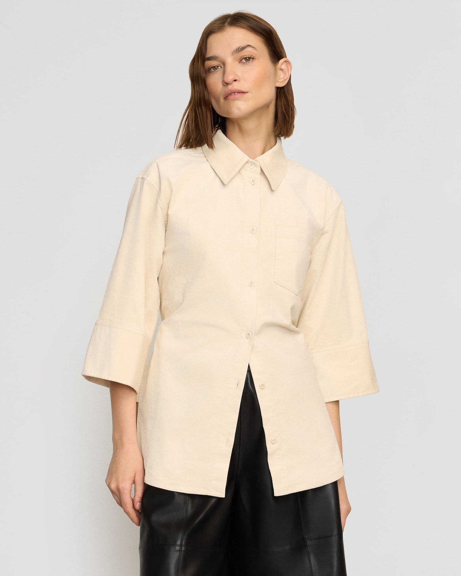 Our modern take on the corduroy shirt. ?With structured sleeves and a waist tie at the back, Remi can be paired with anything from a chic maxi skirt to easy denim for a casual yet elevated statement.?