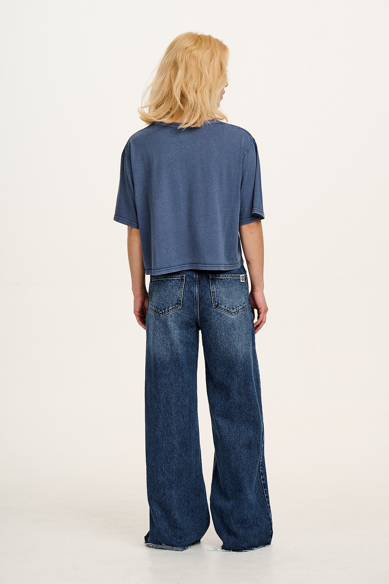 Meet Zayla; our oversized cropped boxy tee, with a dropped shoulder. Great for outfitting with our high waist and wide leg trousers. On trend vintage washed look – no two pieces will look the same.